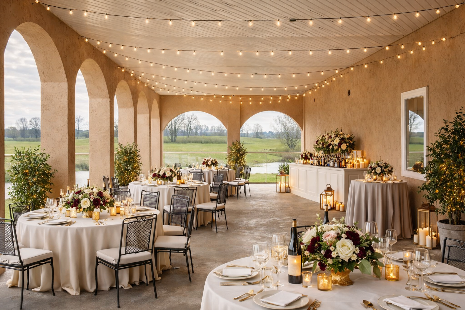 Expansive outdoor seating areas that create a natural extension of the indoor event spaces — designed for sunset cocktails, guest experiences, and timeless photographs.